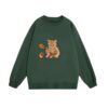 Dark Green Hoodie With Cat Pattern
